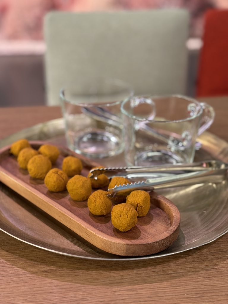 Ja, die Bällchen sind (fast) Kurkuma pur. Ich habe noch etwas Zimt und Pfeffer ergänzt, aber ansonsten ist es wirklich nur Kurkuma und Wasser. Der Trick ist, den Kurkuma in Wasser aufzukochen und quellen zu lassen. Es wird dann eine richtige Paste und die kann man formen.